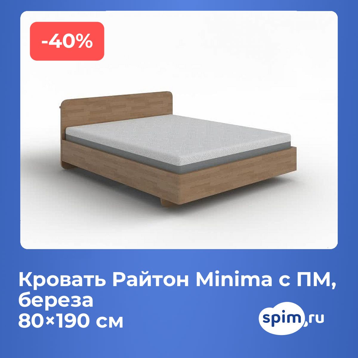 Кровать Райтон Minima с ПМ, березаАртикул С-135787