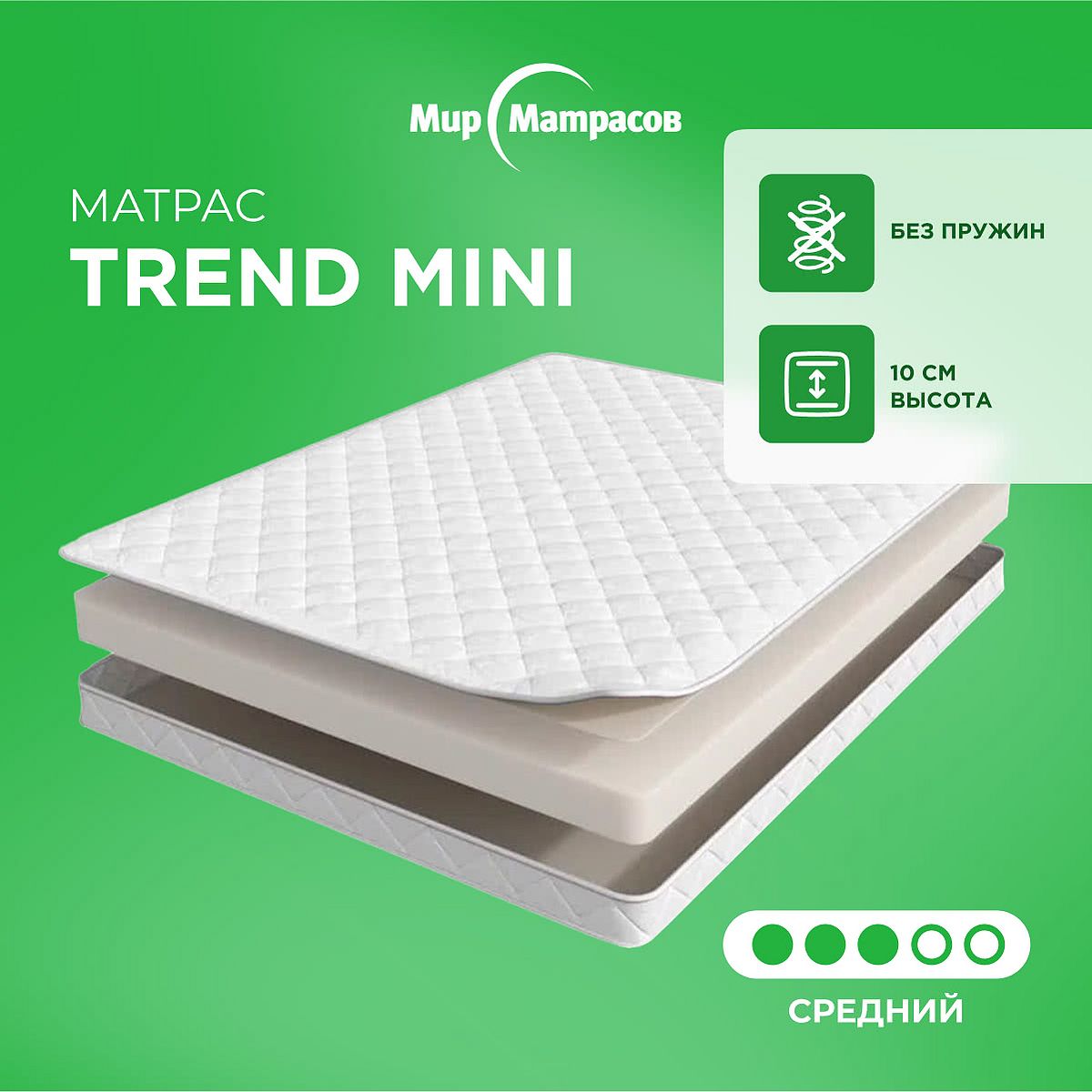 Матрас Trend Mini — беспружинная модель со средней жёсткостью. Высота изделия составляет 10 сантиметров. В основе матраса — высокоэластичная пена. В комплекте идёт несъёмный жаккардовый чехол, простеганный на синтепоне. Максимальная нагрузка на одно спальное место — 110 килограммов.