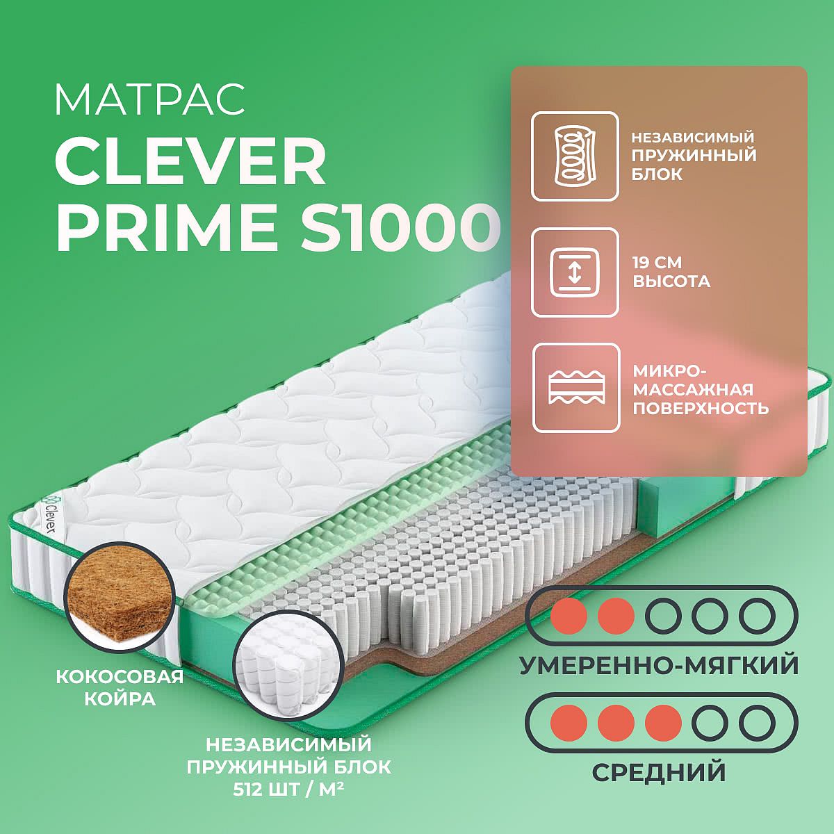 Матрас Clever Prime S1000 175х220 смАртикул С-84222