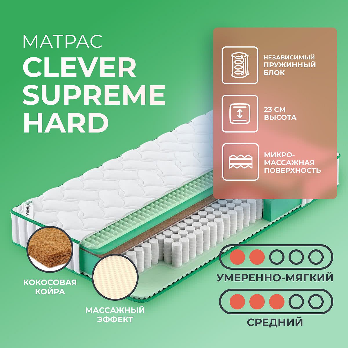 Преимущество матраса Supreme Hard — он имеет 2 различные по жесткости стороны: средне-мягкую и средне-жесткую.