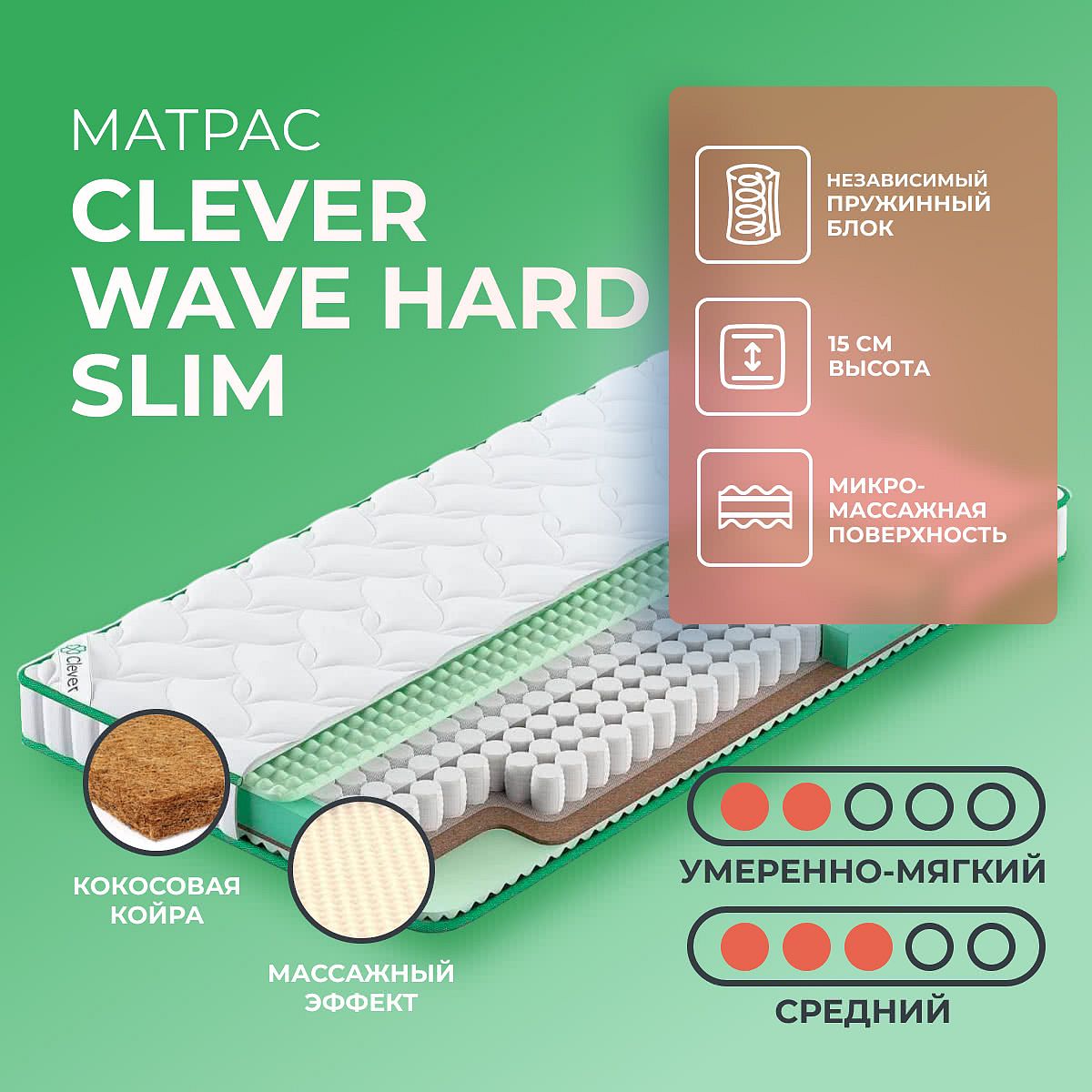 Преимущество матраса Wave Hard Slim — он имеет 2 различные по жесткости стороны: средне-мягкую и средне-жесткую.