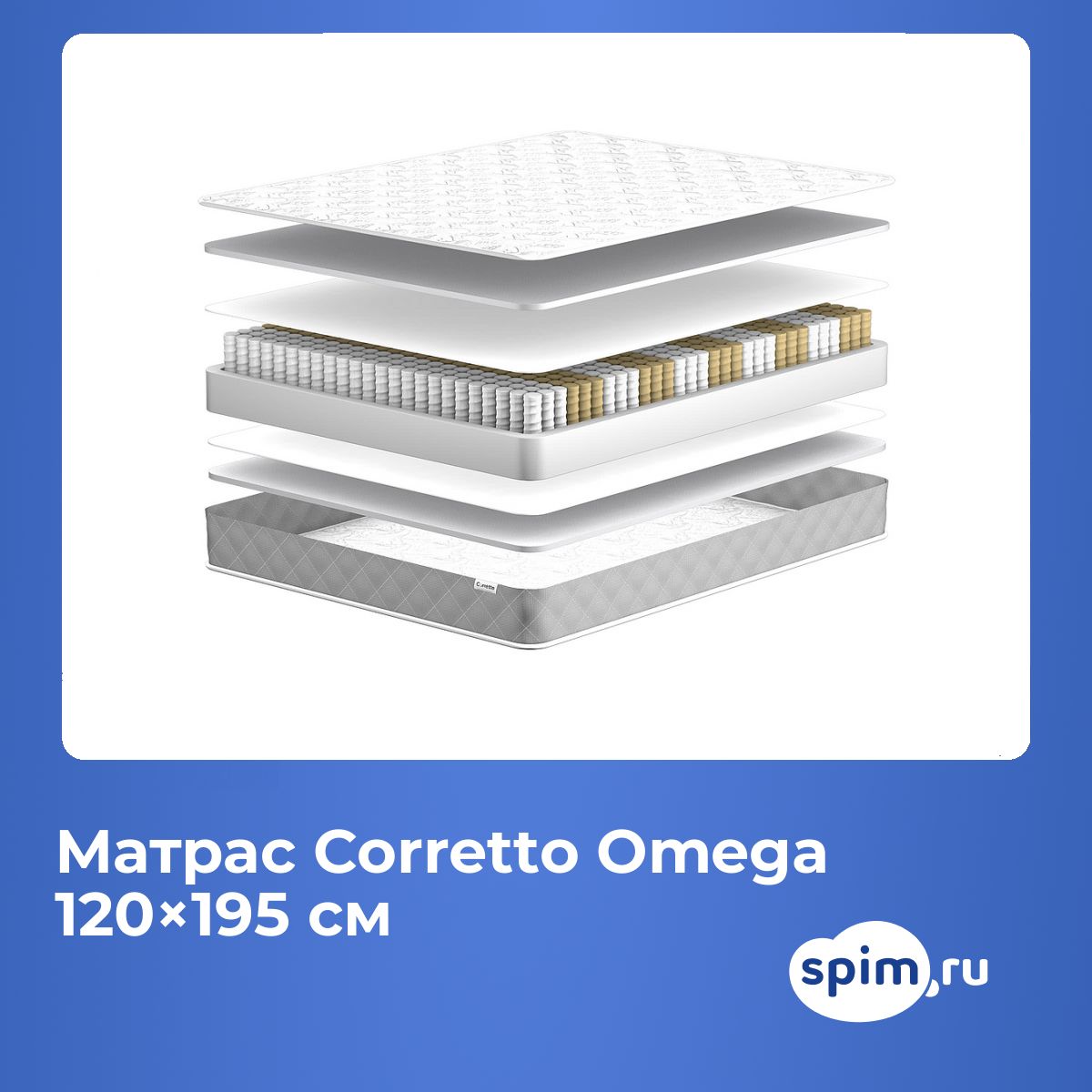 Полутораспальный матрас Corretto Omega 120х195 подойдет для кроватей с размерами спального места, обозначенными как 120x195 см, 1200х1950 мм, 195х120 см, 1950х1200 мм (ширина 120 см, длина 195 см).
