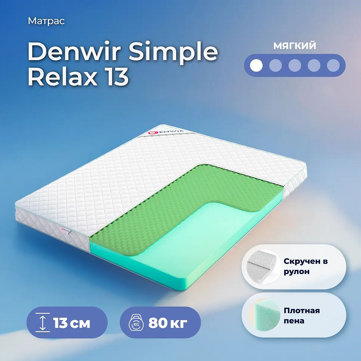 Мягкий матрас «Denwir Simple Relax 13» отлично подойдет человеку с небольшим весом, ценителю комфорта.