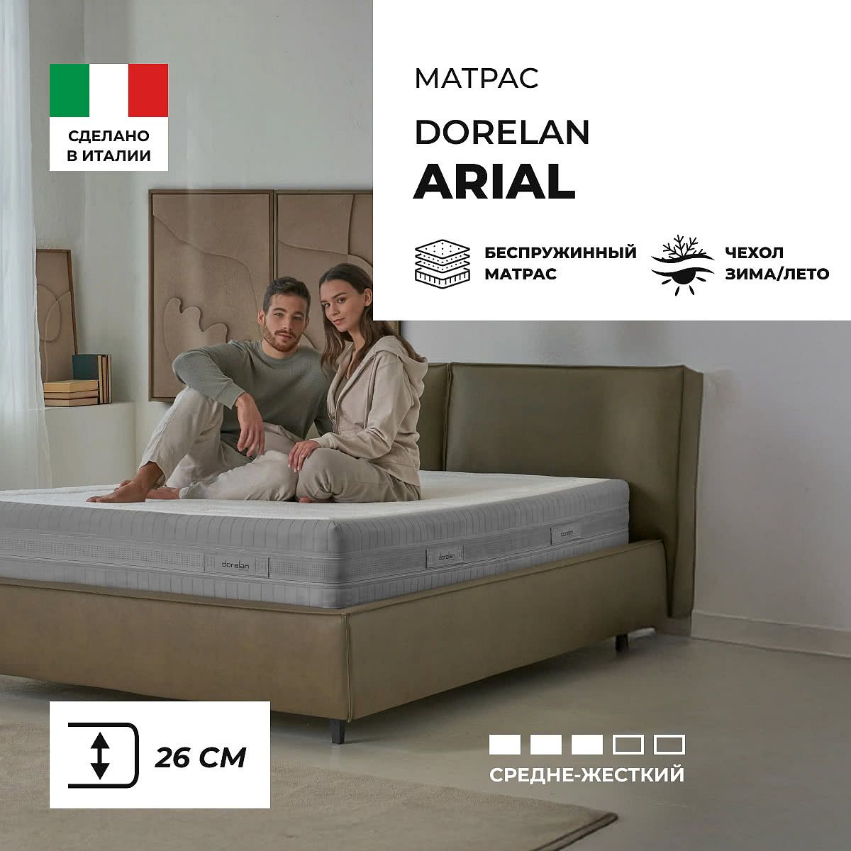 Матрас «Dorelan Arial» — средней жесткости, которая комфортна большинству людей среднего телосложения. Это — оптимальный выбор и детям, и взрослым, и пожилым людям.