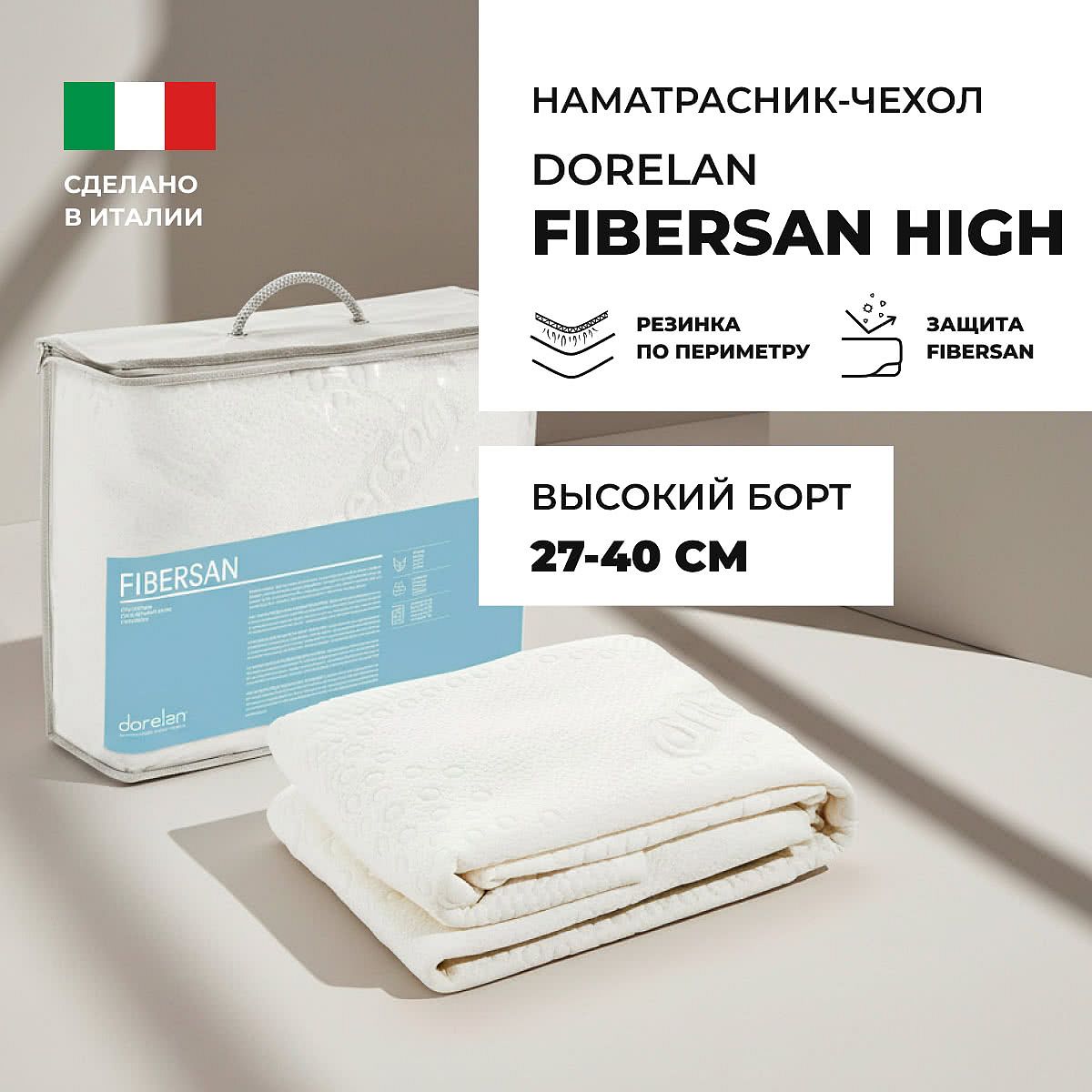 Наматрасник «Fibersan High» в виде чехла полностью закрывает матрас, защищая его от загрязнений и износа.