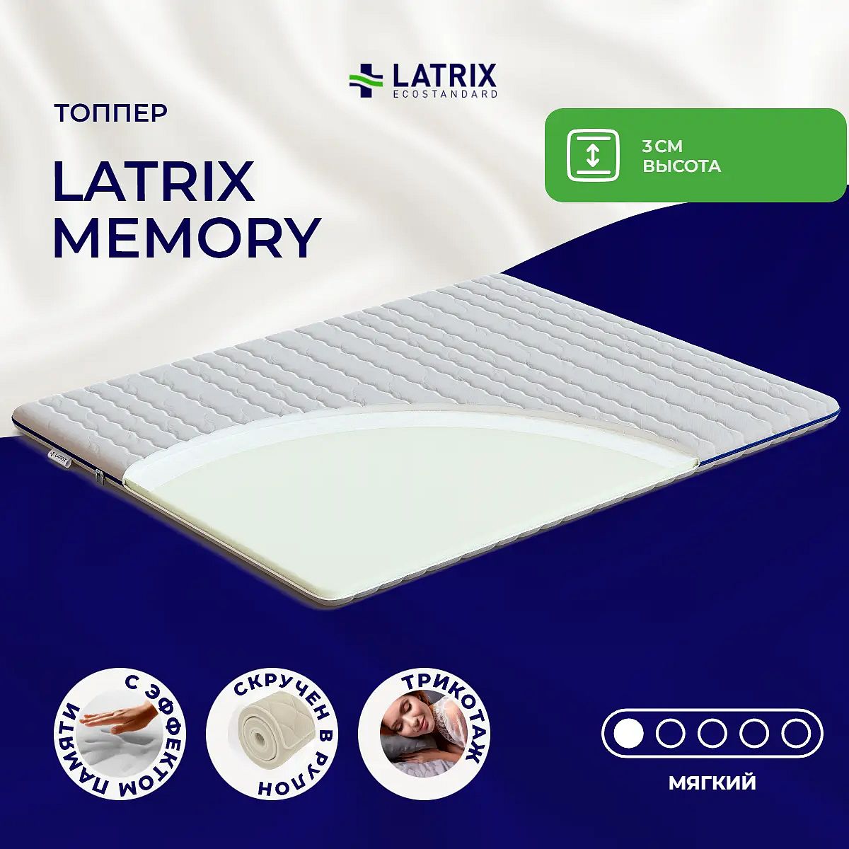Мягкий матрас «Latrix Memory» отлично подойдет человеку с небольшим весом, ценителю комфорта.