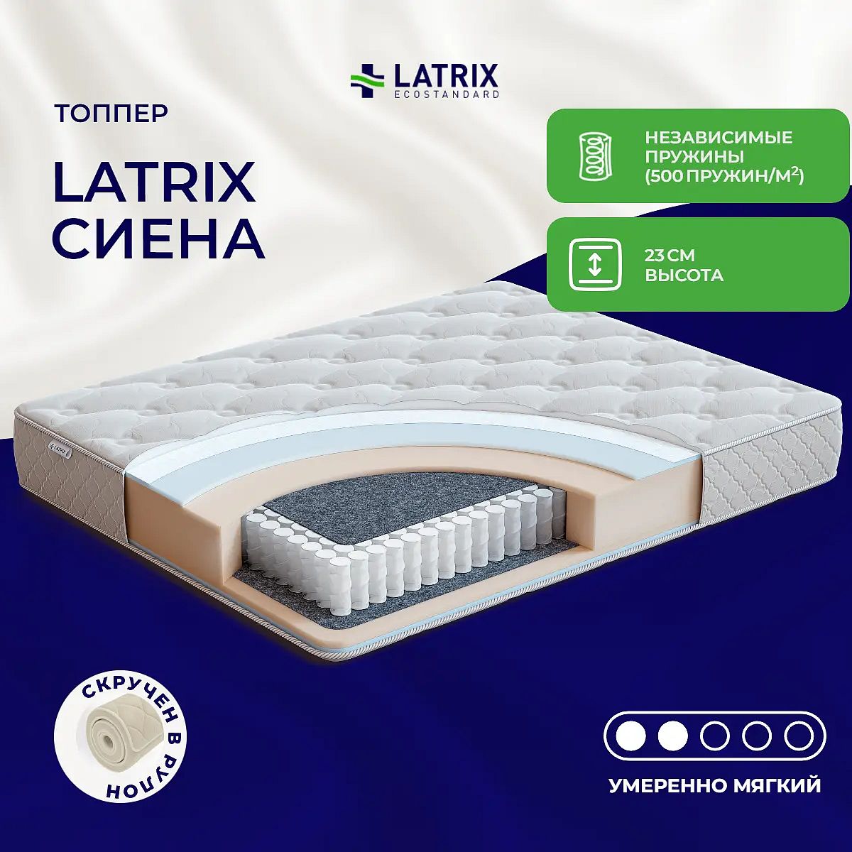 Средне-мягкий матрас «Latrix Сиена» просто создан для настоящего ценителя комфорта. Такая модель отлично подойдет людям с небольшим весом.