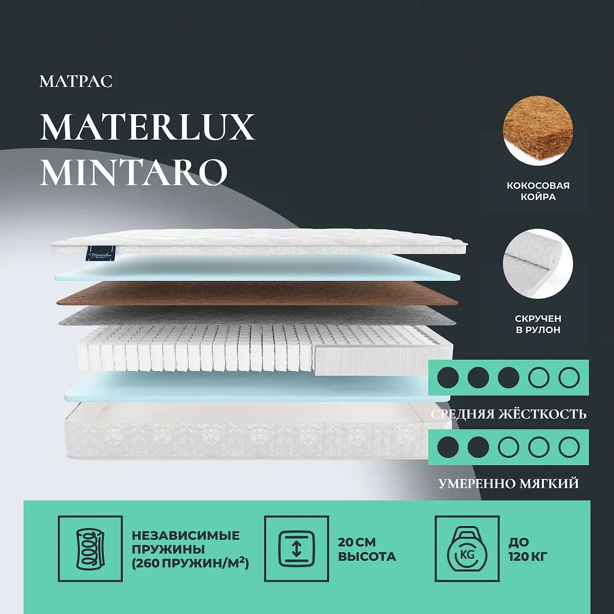 Матрас Mintaro рассчитан на нагрузку не более 120 кг на одно спальное место.