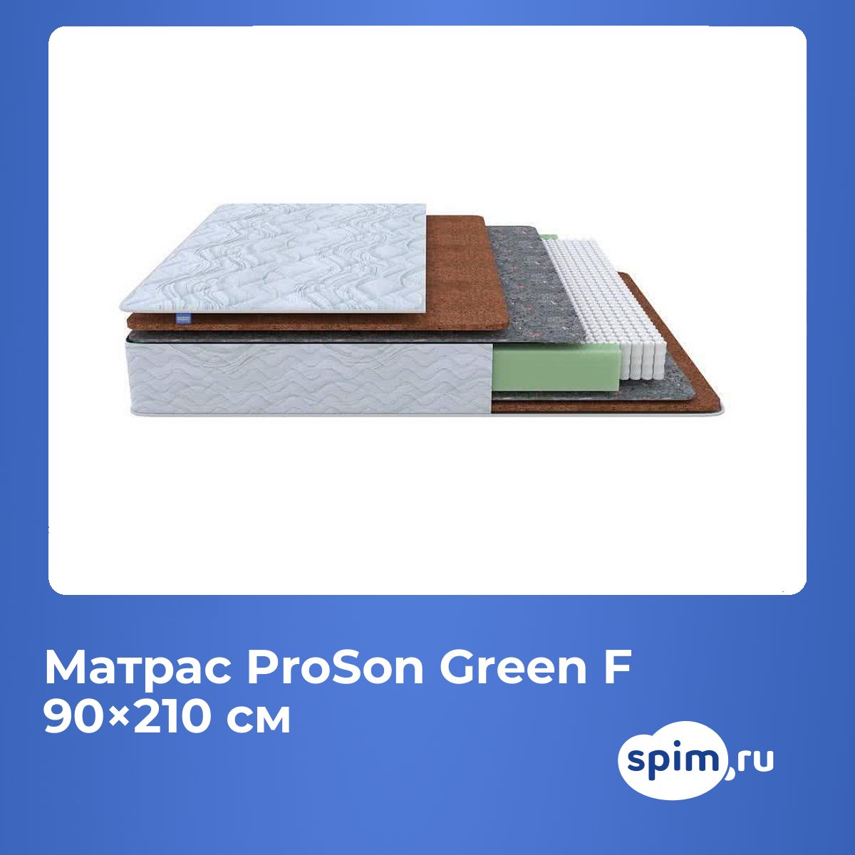 Односпальный матрас ProSon Green F 90х210 подойдет для кроватей с размерами спального места, обозначенными как 90x210 см, 900х2100 мм, 210х90 см, 2100х900 мм (ширина 90 см, длина 210 см).