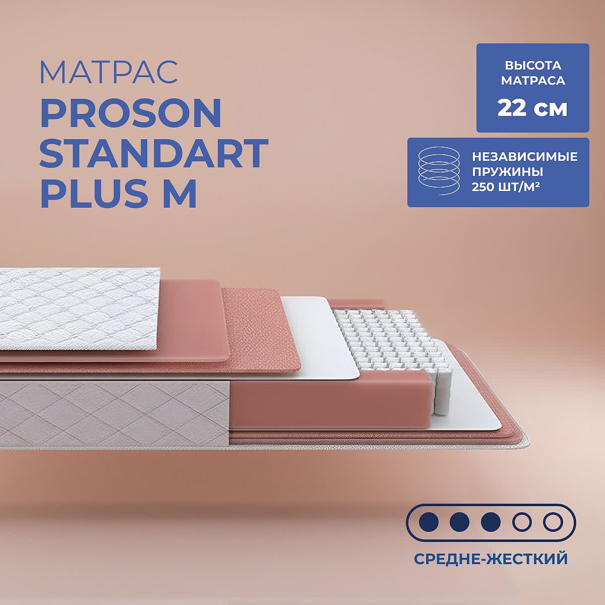 Матрас «ProSon Standart Plus M» — средней жесткости, которая подходит большинству людей среднего телосложения. Это — универсальный выбор и детям, и взрослым, и пожилым людям.