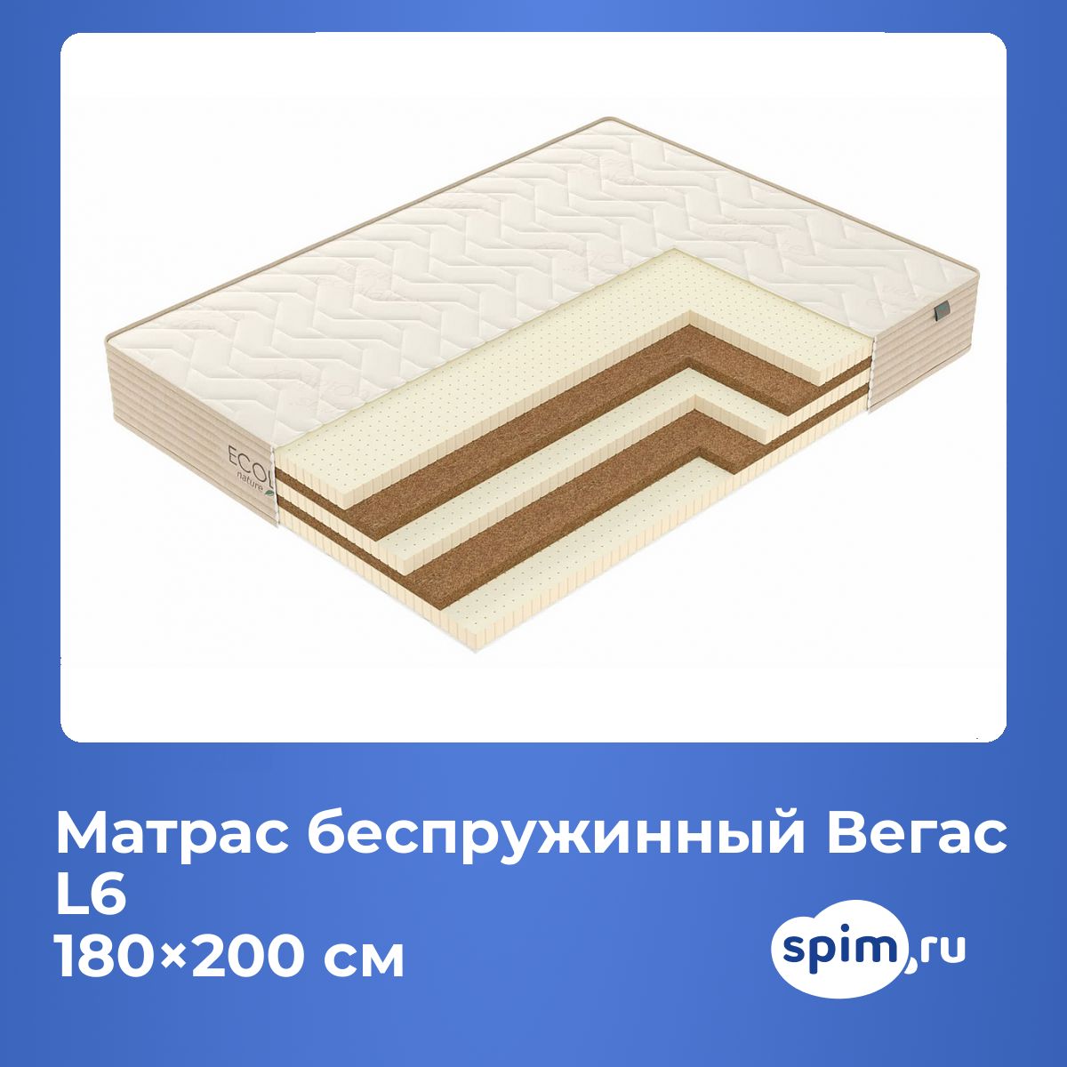 Кокос — натуральный материал, койра отлично дышит, придает матрасу «L6» жесткость и упругость.