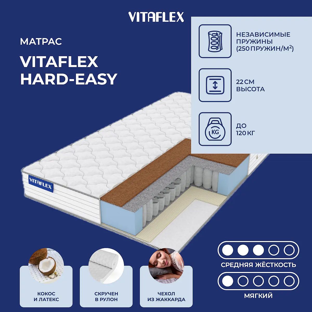 Матрас Hard-Easy рассчитан на нагрузку не более 120 кг на одно спальное место.