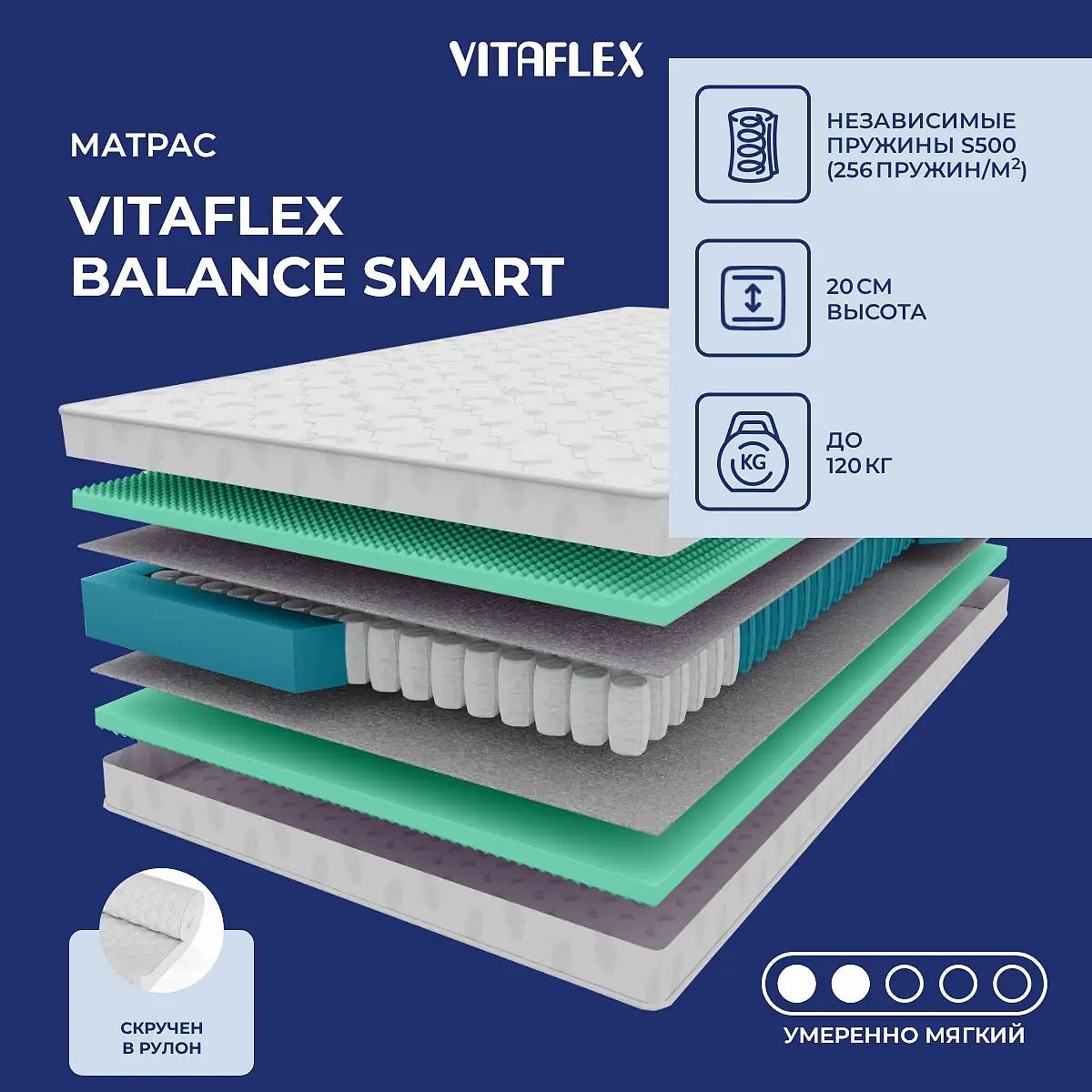 О производителеVitaflex — российский бренд, предлагающий современные решения для комфортного сна с акцентом на качество материалов и практичность в использовании.